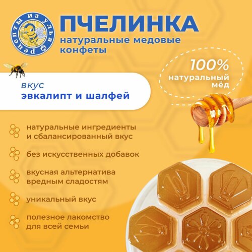 Конфеты натуральные медовые "Пчелинка", с эвкалиптом и шалфеем
