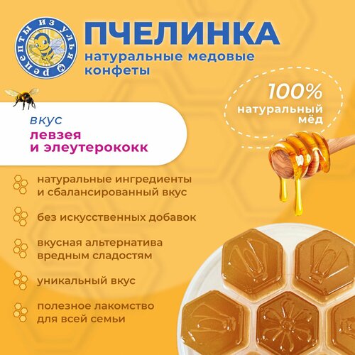 Конфеты натуральные медовые "Пчелинка", с левзеей и элеутерококком