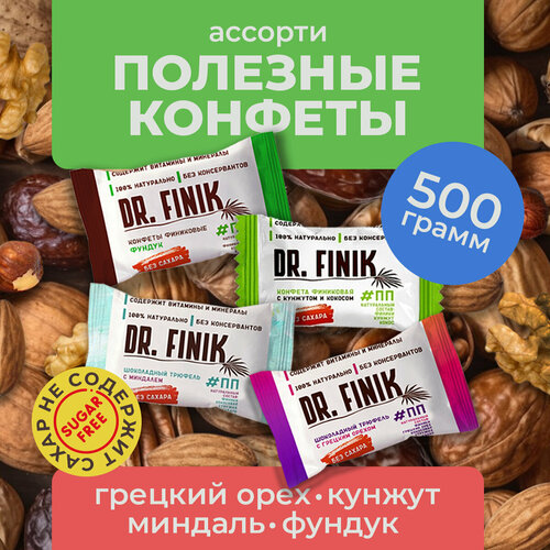 Конфеты финиковые ассорти (миндаль, грецкий орех, кунжут) DR. FINIK 500 г/полезные/натуральные/без сахара