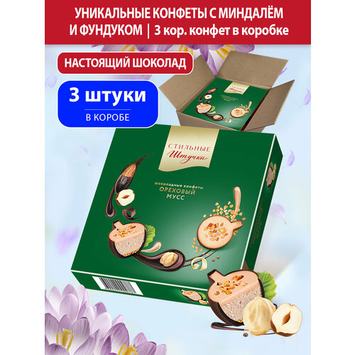 Конфеты шоколадные Стильные штучки ореховый мусс подарочные в коробке, 3 шт по 104 г