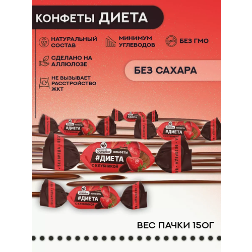 Конфеты шоколадные с клубникой "безвреда" 150 гр. / Шоколадные конфеты без сахара