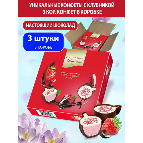 Конфеты шоколадные Стильные штучки Клубничный мусс подарочные в коробке, 3 шт по 104 г