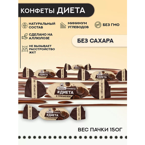 Конфеты шоколадные с трюфелем "безвреда" 150 гр. / Шоколадные конфеты без сахара