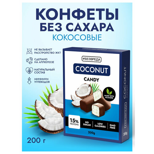 Конфеты шоколадные с кокосовой начинкой "безвреда" 200 гр. / Шоколадные конфеты без сахара