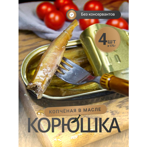 Корюшка тихоокеанская копченая в масле Охотоморье, 4 банки по 175 г
