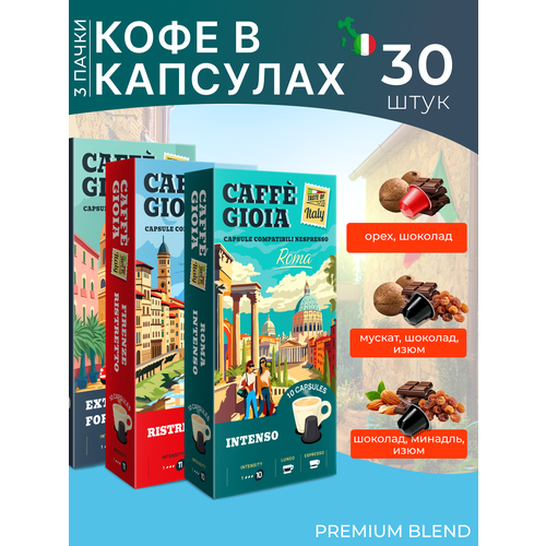 Кофе в капсулах Caffe Gioia ассорти Venezia Delicato, Firenze Ristretto, Roma Intenso 3 упаковки Х 10 капсул