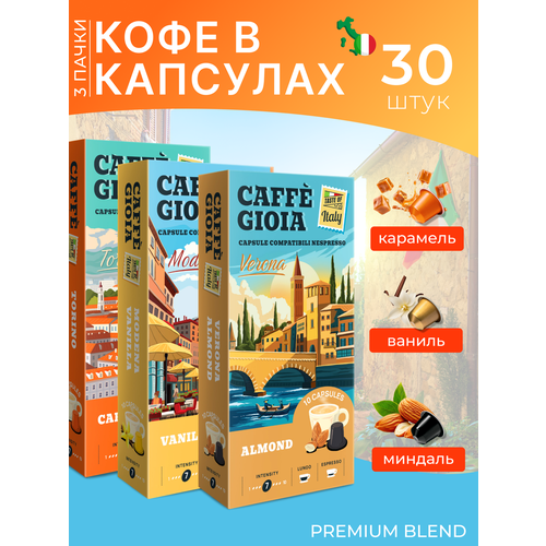 Кофе в капсулах Caffe Gioia ассорти Torino Caramel, Modena Vanilla, Verona Almond 3 упаковки Х 10 капсул