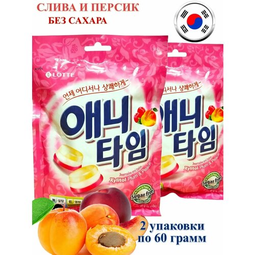 LOTTE Anytime Леденцы AnyTime (Энитайм) Слива и Персик, без сахара, 2 упаковки