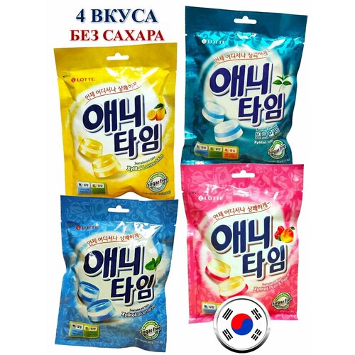 LOTTE Anytime Леденцы AnyTime (Энитайм), без сахара, 4 вкуса
