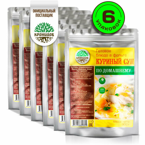 Куриный суп по-домашнему Готовое блюдо в реторт-пакете ТМ Кронидов. Консерва Набор 6 шт. по 300 г
