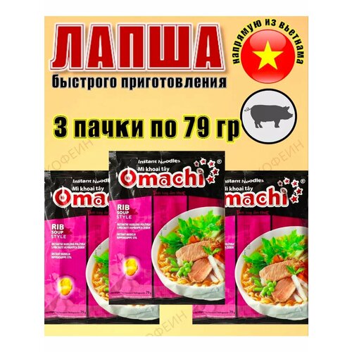 Лапша быстрого приготовления Omachi со вкусом свинина , 3 шт по 79 гр