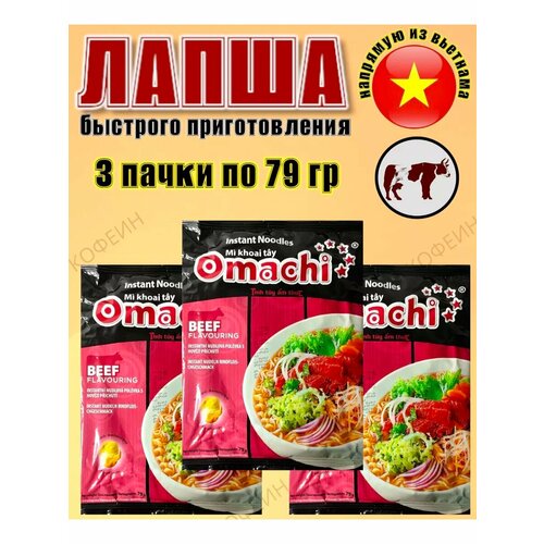 Лапша быстрого приготовления Omachi , со вкусом говядины , 3 шт п 79г