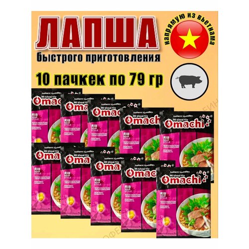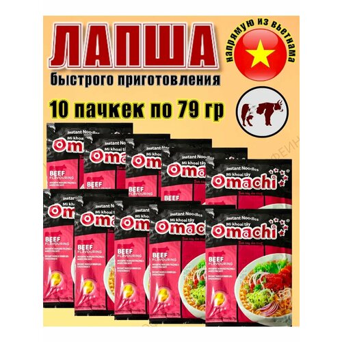 Лапша быстрого приготовления Omachi , со вкусом говядины , 10 шт по 79 г