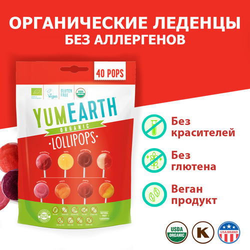 Леденцы YumEarth, органические, без глютена и без аллергенов, 8 вкусов, 40 леденцов