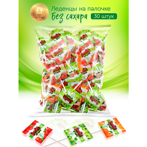 Леденцы без сахара SWEET POPS Light на палочке, ассорти вкусов, 30 шт.