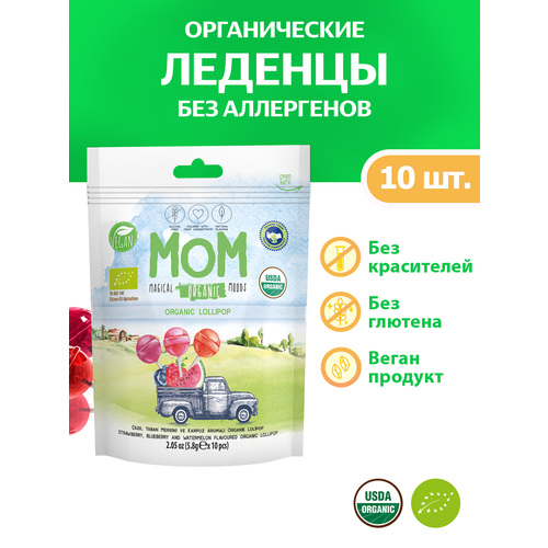 Леденцы на палочке MOM MAGICAL ORGANIC MOODS, oрганик, без глютена, без аллергенов, 3 вкуса, 10 шт.