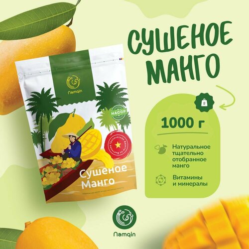 Манго сушеное Namqin 1 кг, кусочками, экзотический, натуральный и полезный продукт с витаминами, в пакете с зип замком. Вьетнам