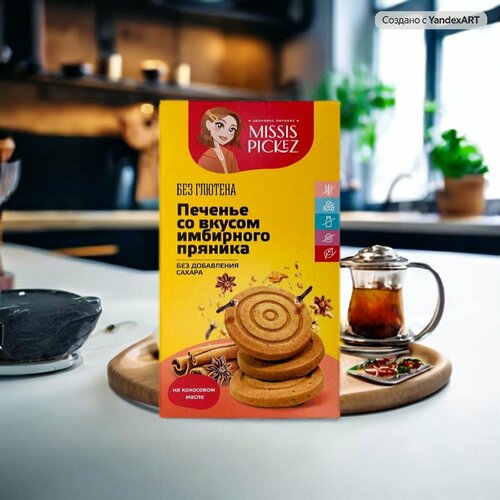 NEW! Печенье со вкусом имбирного пряника, без сахара И без глютена, Missis Pickez, 100г