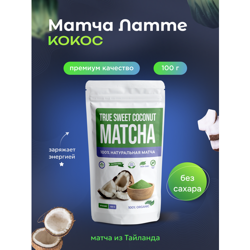 Матча Латте Кокосовая без сахара 100 г японский зеленый чай растворимый MatchaTrue