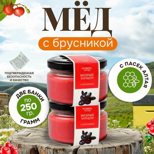 Мед натуральный с брусникой алтайский 2 шт по 250г