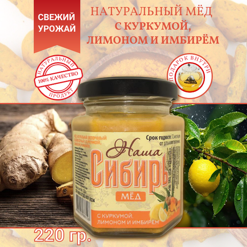 Мед с куркумой, имбирём и лимоном, 220 гр
