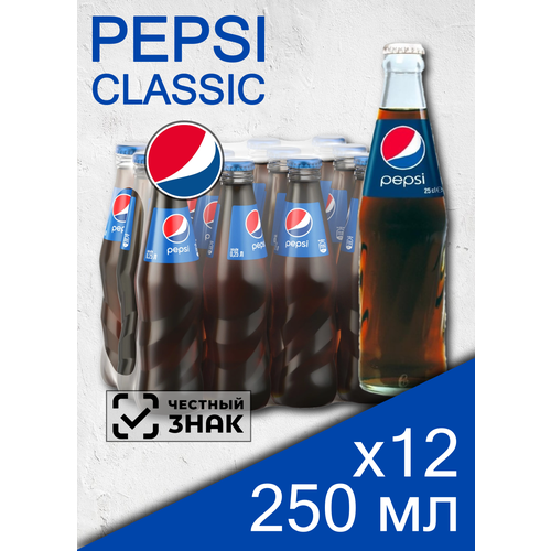 Pepsi Cola, 0.25 л, 12 шт, стеклянная бутылка, (газированный напиток Пепси, стекло)