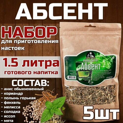 Набор для приготовления настоек (настойка для самогона) Абсент Кавказский винокур 5 шт.