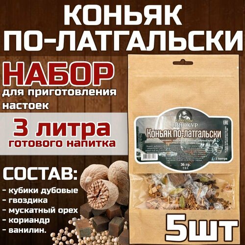 Набор для приготовления настоек (настойка для самогона) Коньяк по-латгальски Кавказский винокур 5 шт.