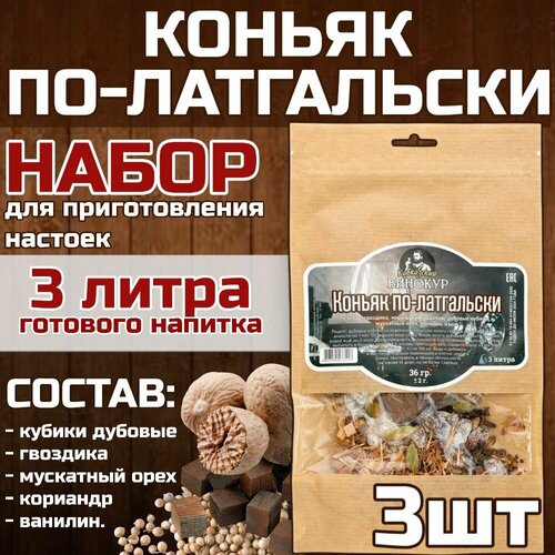 Набор для приготовления настоек (настойка для самогона) Коньяк по-латгальски Кавказский винокур 3 шт.