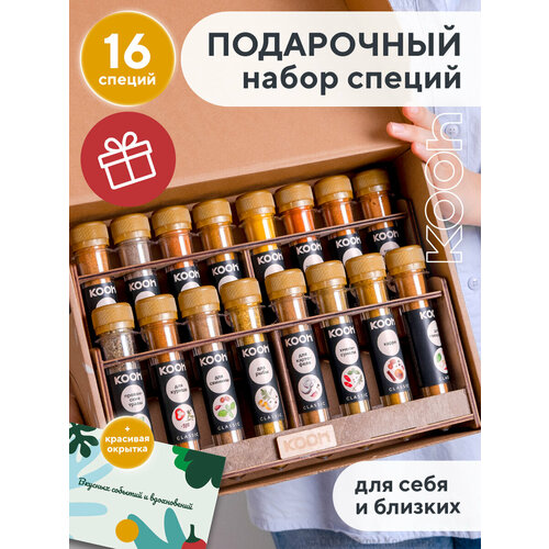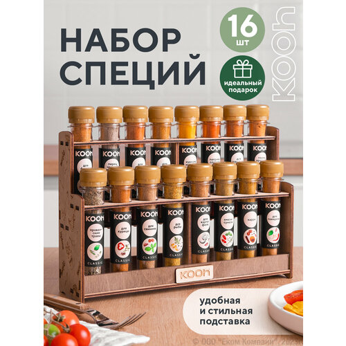 Набор специй: приправа для курицы, плова, универсальная с подставкой под специи, Kooh, 16 вкусов, подарок учителю