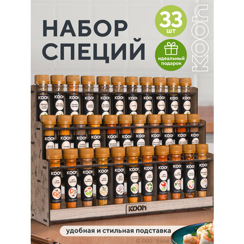 Набор специй: приправа для курицы, плова, универсальная с подставкой под специи, Kooh, 33 вкуса