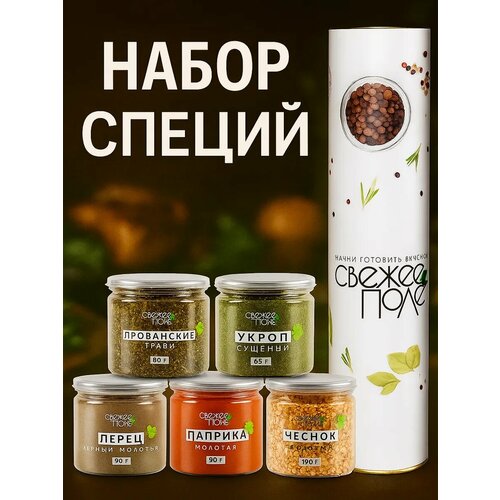 Набор специй и приправ №21 Свежее Поле в подарочной упаковке из 5 вкусов баночки — ассорти пряностей,445 гр