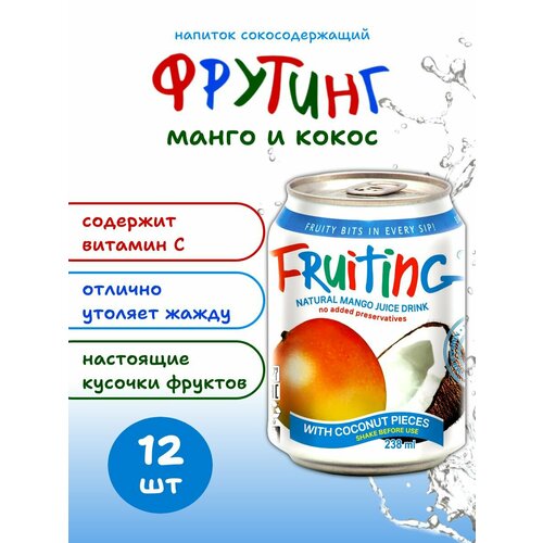 Напиток из сока манго Фрутинг с кусочками кокоса и витамином С, без газа,12 шт*238 мл