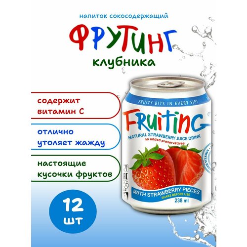 Напиток из сока клубники Фрутинг с кусочками настоящей клубники и витамином С, без газа,12 шт*238 мл