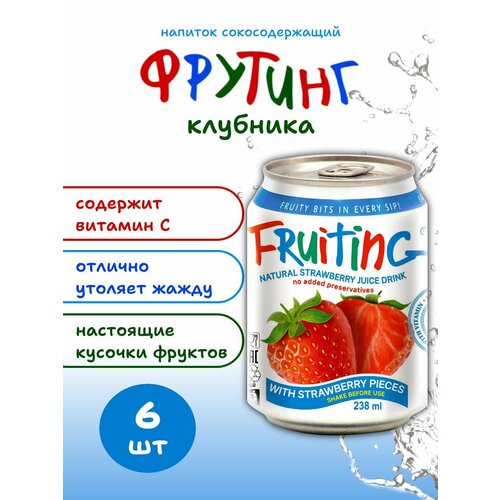 Напиток из сока клубники Фрутинг с кусочками настоящей клубники и витамином С, без газа, 6 шт*238 мл