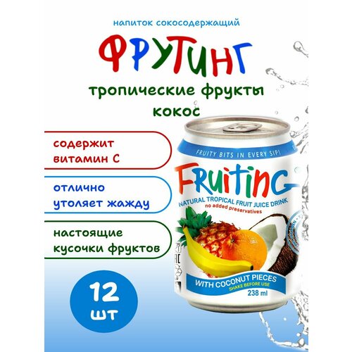 Напиток из сока тропических фруктов Фрутинг с кусочками кокоса и витамином С, без газа, 12 шт*238 мл