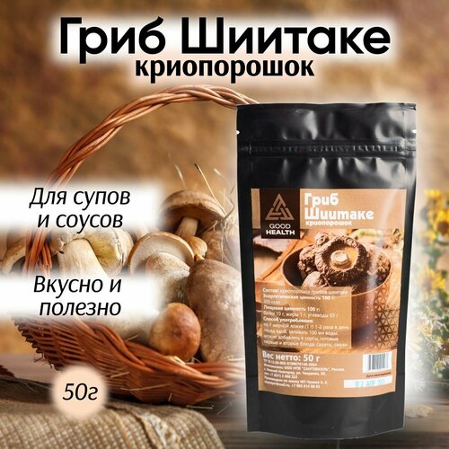 Натуральный грибной препарат сушеные молотые грибы Шиитаке для снижения уровня холестерина, давления, улучшения работы ЖКТ 50 г