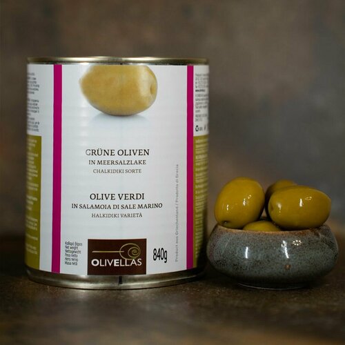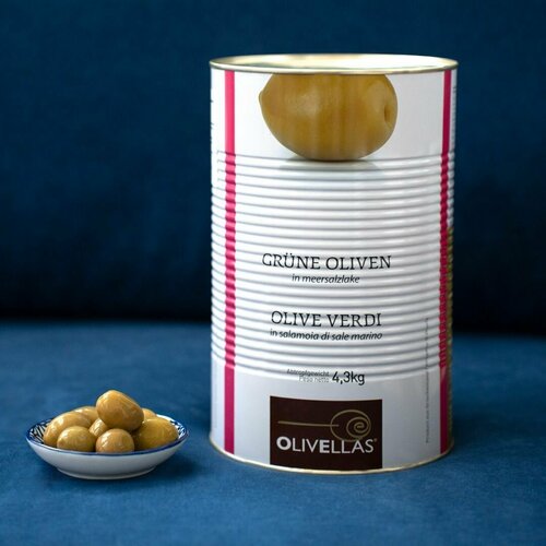 Оливки Греческие зелёные Halkidiki с косточкой Atlas (70-90) OLIVELLAS, 4.3кг