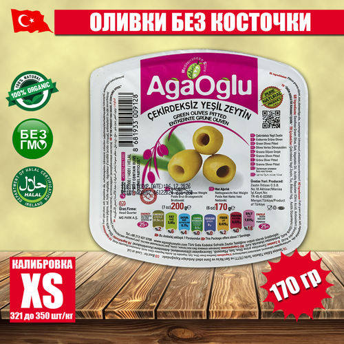 Оливки без косточек 170 гр AGAOGLU, турецкие, в вакуумной упаковке