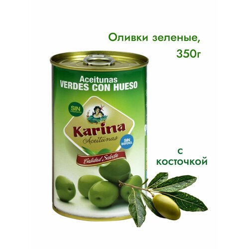 Оливки зеленые с косточкой Karina, 350 г жестяная банка
