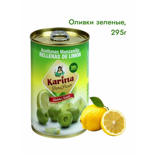 Оливки зеленые с лимоном Karina, 295 г жестяная банка