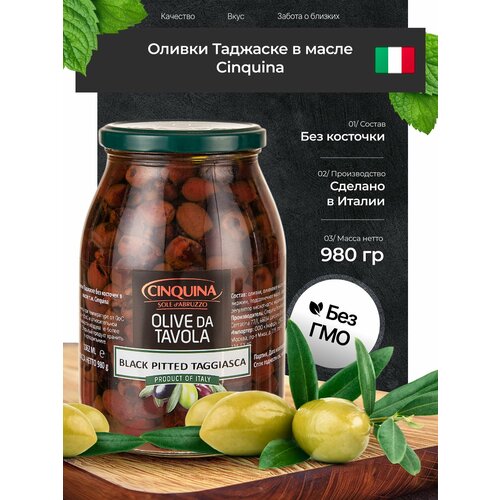 Оливки Таджаске Cinquina без косточек в оливковом масле 980г