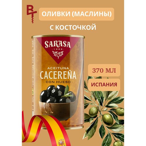 Оливки черные с косточкой Sarasa Асейтунас негра кон уесо 0,37 литра жестяная банка