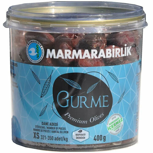 Оливки черные натуральные с косточкой Gurme XS (321-350) Marmarabirlik 400 г, пласт. уп-ка.