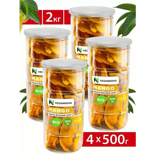 VeganNova Манго сушеное без сахара, вяленое, 100% натуральное, 2 кг (4 шт по 500 г)