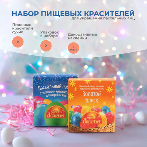 Пасхальный набор пищевых красителей 4 цвета "Золотой — блеск"