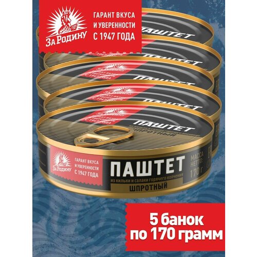 Паштет шпротный За Родину из кильки и салаки горячего копчения, 170 г, 5 банок