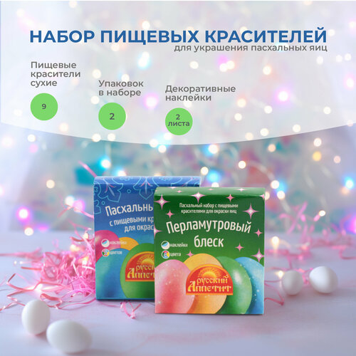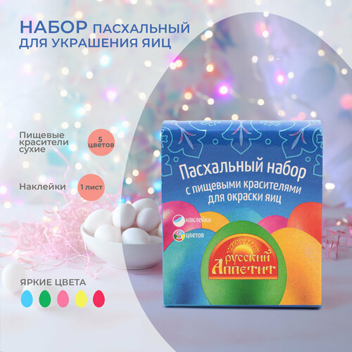 Пасхальный набор пищевых красителей 5 цветов + наклейки на яйца