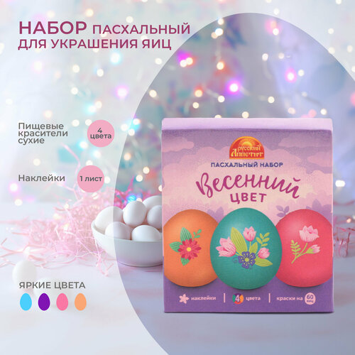 Пасхальный набор пищевых красителей 4 цвета + наклейки на яйца "Весенний цвет"