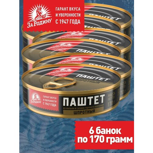 Паштет шпротный За Родину из кильки и салаки горячего копчения, 170 г, 6 банок